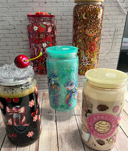 Have your own custom Snow globe tumbler from glitter to mica powder to liquid. Pick from a variety of styles.